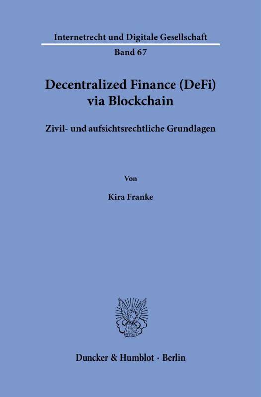 English summary: Decentralized Finance (DeFi) via Blockchain. Civil and Regulatory Principles Decentralized Finance (DeFi) is the hub of the Web3. The pursue of complete decentralization is currently not convincing in every respect. Problems with regard to enforceable liability claims and tangible liability subjects have hardly been considered to date. The global involvement of regulatory authorities with the construction of possible addressees of supervisory regulations also shows the existing need for clarification. The thesis is dedicated to these specific problems. In addition to the development of a regulatory concept under supervisory law, civil law problems are mainly solved using the existing legal basis. German description: Das Web3 wird in der Finanzwelt immer prasenter. Mit dem Boom von Decentralized Finance (DeFi) 2020 begann eine neue Dimension fur die Verwendung von Smart Contracts auf der Distributed Ledger Technology (DLT). Doch so schnell der Hype um eine solche Finanzwelt entstehen kann, kann dieser auch wieder enden. Dies zeigen die verschiedenen Kryptocrashes im Jahre 2022. Die in der Literatur diskutierten Fragen uber mogliche Haftungsanspruche und -subjekte sowie einer moglichen aufsichtsrechtlichen Regulierung, bekamen erstmalig eine praxisorientierte Bedeutung.Die Arbeit beschaftigt sich aufgrund des Strukturwandels mit den neuen Grundlagen der DeFi-Sphare. Im Fokus stehen zivilrechtliche Vertragsgestaltungs- und Haftungsfragen sowie aufsichtsrechtliche Regulierungsfragen. Mithilfe eines Rechtsvergleiches aus aufsichtsrechtlicher Perspektive bewertet diese Arbeit die geplanten und - sich aus der Arbeit ergebenden - erforderlichen aufsichtsrechtlichen Aspekte.
