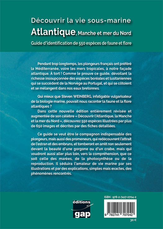 Ce guide permet d'identifier les différentes espèces sous-marines qui peuplent la Manche, l'océan Atlantique et la mer du Nord. Pour chaque espèce, la taille et le biotope sont spécifiés.