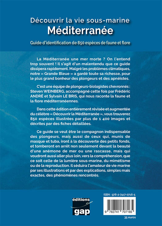 Ce guide permet d'identifier les différentes espèces sous-marines peuplant la Méditerranée (les végétaux, les foraminifères, les méduses, les mollusques, les bryozoaires, les crustacés, les vertébrés, etc.). Pour chacune d'elles, la taille et le biotope sont spécifiés.