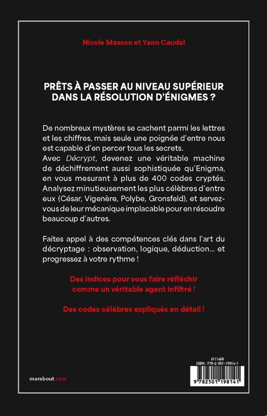 Mettez votre logique et votre sens de l’observation à l’épreuve avec 400 jeux captivants ! Que vous soyez amateur de chiffres ou passionné de lettres, ce livre vous propose un mélange de défis qui feront travailler à la fois votre côté mathématique et littéraire : anagrammes, codes César, sudolettres, codes Polybe… et bien plus encore.