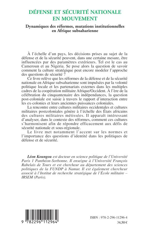 politique locale et les partenariats externes dans les multiples cadres de la coopération militaire Afrique/Occident. À l'ère de la célébration du cinquantenaire des indépendances, la question postcoloniale peut également être saisie à travers le rapport d'interaction entre les ex-colonies et leurs anciennes puissances coloniales. En effet, la rencontre entre cultures militaires occidentales et cultures militaires postcoloniales génère à l'échelle des Etats africains des cultures militaires métissées. Dans le contexte des réformes, le livre analyse comment ces cultures s'harmonisent afin de répondre efficacement aux défis de sécurité nationale et sous-régionale. L'accent est mis sur les normes et l'importance des questions d'identités dans les politiques de défense et de sécurité.
