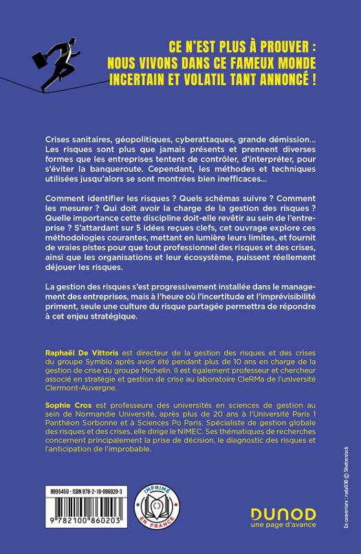 Comment identifier les risques ? Quels schémas suivre ? Comment les mesurer ? Qui doit avoir la charge de la gestion des risques ? Quelle importance cette discipline doit-elle revêtir au sein de l’entreprise ? S’attardant sur 5 idées reçues clefs, cet ouvrage explore ces méthodologies courantes, mettant en lumière leur limite, et fournit de vraies pistes pour que tout professionnel des risques et des crises, ainsi que les organisations et leur écosystème, puissent réellement déjouer les risques.