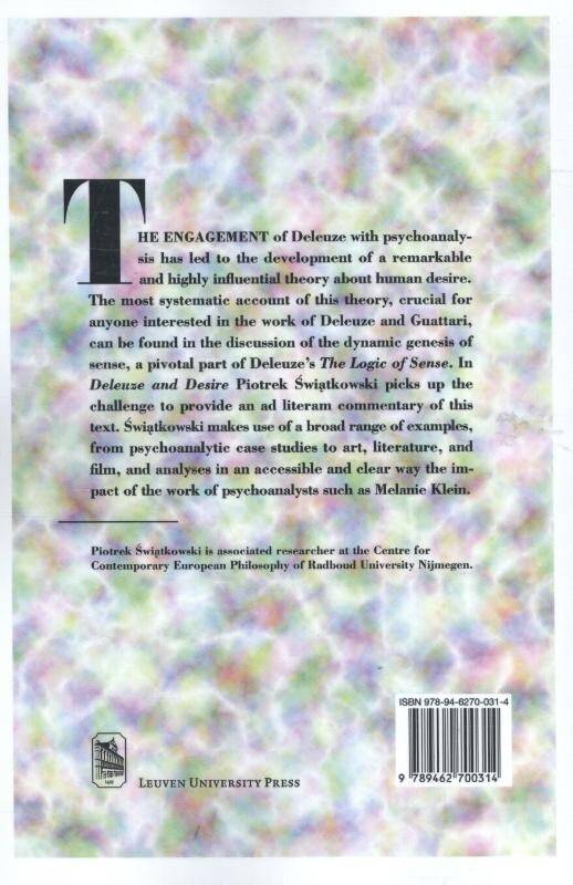 The engagement of Gilles Deleuze with psychoanalysis has led to the development of a remarkable and highly influential theory about human desire. The most systematic account of this theory, crucial for anyone interested in the work of Deleuze and Félix Guattari, can be found in the discussion of the dynamic genesis of sense, a pivotal part of Deleuze's The Logic of Sense. In Deleuze and Desire Piotrek Swiatkowski picks up the challenge to provide a commentary on this text. Swiatkowski makes use of a broad range of examples, from psychoanalytic case studies to art, literature, and film, and systematically analyzes in an accessible and clear way the impact of the work of psychoanalysts such as Melanie Klein on Deleuze.