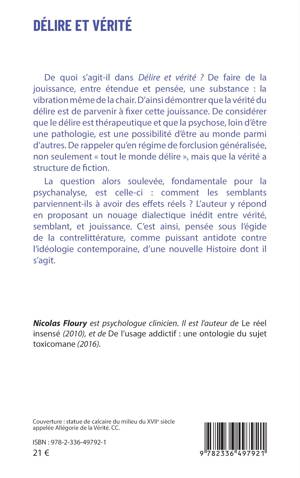 De quoi s'agit-il dans Délire et vérité ? De faire de la jouissance, entre étendue et pensée, une substance: la vibration même de la chair. D'ainsi démontrer que la vérité du délire est de parvenir à fixer cette jouissance. De considérer que le délire est thérapeutique et que la psychose, loin d'être une pathologie, est une possibilité d'être au monde parmi d'autres. De rappeler qu'en régime de forclusion généralisée, non seulement tout le monde délire, mais que la vérité a structure de fiction. La question alors soulevée, fondamentale pour la psychanalyse, est celle-ci comment les semblants parviennent-ils à avoir des effets réels ? L'auteur y répond en proposant un nouage dialectique inédit entre vérité, semblant, et jouissance. C'est ainsi, pensée sous l'égide de la contrelittérature, comme puissant antidote contre l'idéologie contemporaine, d'une nouvelle Histoire dont il s'agit.
