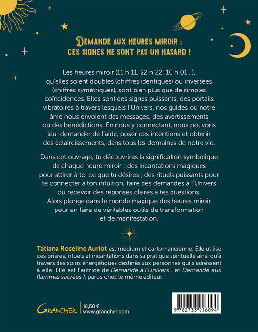 Les heures miroir (11h11, 22h22, 10h01…), qu’elles soient doubles (chiffres identiques) ou inversées (chiffres symétriques), sont bien plus que de simples coïncidences. Elles sont des signes puissants, des portails vibratoires à travers lesquels l’Univers, nos guides ou notre âme nous envoient des messages, des avertissements ou des bénédictions. En nous y connectant, nous pouvons leur demander de l’aide, poser des intentions et obtenir des éclaircissements, dans tous les domaines de notre vie. Dans cet ouvrage, tu découvriras la signification symbolique de chaque heure miroir ; des incantations magiques pour attirer à toi ce que tu désires ; des rituels puissants pour te connecter à ton intuition, faire des demandes à l’Univers ou recevoir des réponses claires à tes questions. Alors plonge dans le monde magique des heures miroir pour en faire de véritables outils de transformation et de manifestation.