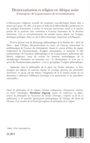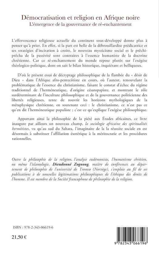 L'effervescence religieuse actuelle du continent sous-développé donne plus à penser qu'à prier. Car ce ré-enchantement du monde repose plutôt sur l'exégèse théologico-politique, dont on sait le bilan historique, inquiétant et belliqueux. D'où le présent essai de décryptage philosophique de la flambée du « désir de Dieu » dans l'Afrique afro-pentecôtiste. Apportant la philosophie de la piété aux Etudes africaines, ce livre inaugure par ailleurs un nouveau champ, la sociologie africaine des spiritualités hermétistes.