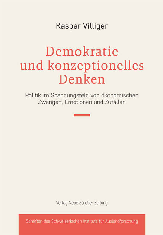 Kaspar Villiger beleuchtet den Einfluss der Institutionen, der politischen Kultur und des Zufalls auf das menschliche Handeln und beschreibt einige der Demokratie inhärente Fehlanreize. Er fordert eine Politik, die sich am mündigen und selbstverantwortlichen Menschen orientiert und gleichzeitig der Marktwirtschaft genügend Freiraum gewährt. Die Politik benötigt eine konzeptionelle Grundlage, die ökonomische Gesetzmässigkeiten berücksichtigt und den Stimmbürgern erlaubt, politische Einzelmassnahmen einzuordnen. Er erläutert dies an zwei konkreten Beispielen. Er zeigt auf, dass die Schuldenbremse Teil eines umfassenden finanzpolitischen Konzepts war und dass sich der Föderalismus an klaren politischen und ökonomischen Prinzipien orientieren muss. Er beschreibt aber auch, wie z. B. Volksentscheide der Politik eine andere Richtung geben können, die dann eine grundlegende Revision der Konzepte erfordert