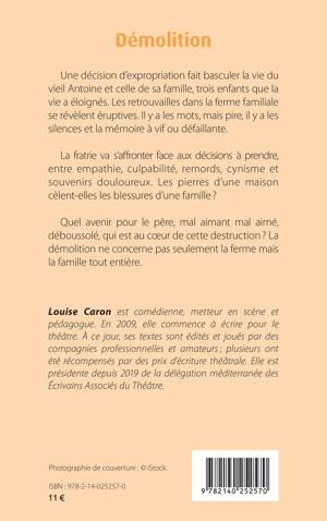 Une décision d’expropriation fait basculer la vie du vieil Antoine et celle de sa famille, trois enfants que la vie a éloignés. Les retrouvailles dans la ferme familiale se révèlent éruptives. Il y a les mots, mais pire, il y a les silences et la mémoire à vif ou défaillante. La fratrie va s’affronter face aux décisions à prendre, entre empathie, culpabilité, remords, cynisme et souvenirs douloureux. Les pierres d’une maison cèlent-elles les blessures d’une famille ? Quel avenir pour le père, mal aimant mal aimé, déboussolé, qui est au coeur de cette destruction ? La démolition ne concerne pas seulement la ferme mais la famille tout entière.