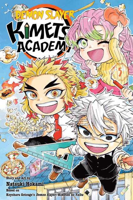 Spring is here, and life is in full bloom at Kimetsu Academy! A poorly placed cut (on a pizza) gets Muichiro into a world of trouble with his brother, while Rengoku's dad gets wrapped up a real bear of a battle. Meanwhile, Uzui finds himself critiquing the art of Kimetsu Academy's creepiest resident! And that's not even mentioning a life-or-death fishing trip with Gyomei!