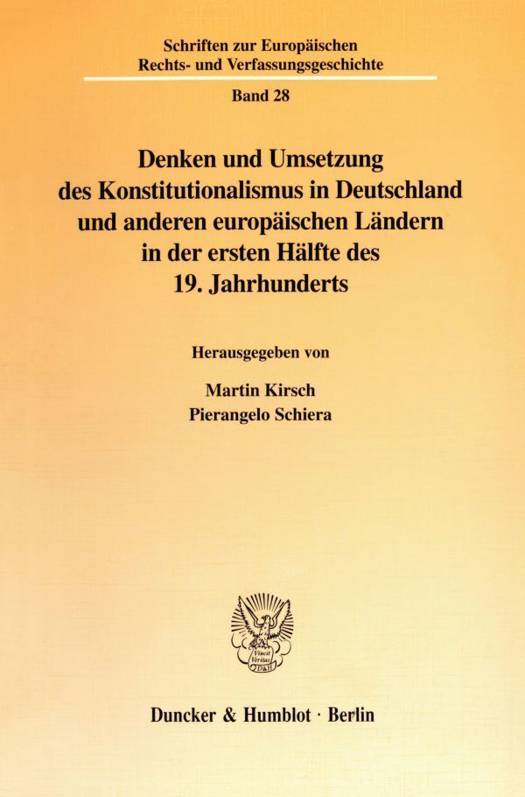 Der Band ist aus einer im Mai 1997 an der Humboldt-Universität zu Berlin veranstalteten Tagung hervorgegangen, an der sich Historiker, Juristen und Politologen aus Deutschland, Italien, Österreich, Spanien und der Schweiz beteiligten. In thematischer Hinsicht beschäftigt sich die Hälfte der Beiträge des Bandes mit den Entstehungsvoraussetzungen und Entwicklungsbedingungen des noch jungen Verfassungsstaates in Deutschland vom Beginn des 19. Jahrhunderts bis zum Vormärz in ihrem Wechselverhältnis von Verfassungsidee und -wirklichkeit. Da sich die Ausformung des Konstitutionalismus in Deutschland aber im engen Austausch mit anderen europäischen Staaten vollzog, werden derartige Einflüsse und Wechselwirkungen in der anderen Hälfte der Abhandlungen in den Blick genommen. Dementsprechend finden sich in dem Band auch Untersuchungen, die u. a. die Verfassungsverhältnisse in Frankreich, Großbritannien, Spanien, Italien, Dänemark und in der Schweiz mit einbeziehen. In methodischer Hinsicht geschieht dies einerseits mit Hilfe eines Vergleichs, andererseits durch die Analyse der Art und Weise der Rezeption zwischen dem Staatsdenken und den Verfassungen unterschiedlicher Länder. Viele der Beiträge knüpfen zudem an die Problematik der Kontinuität und Diskontinuität in der Geschichte des Konstitutionalismus vom 18. zum 19. Jahrhundert an. Insgesamt will der Band einige Elemente zur Geschichte des europäischen Konstitutionalismus im 19. Jahrhundert beisteuern.