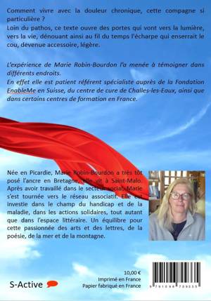 Comment vivre avec la douleur chronique, cette compagne si particulière ? Loin du pathos, ce récit ouvre des portes qui vont vers la lumière, vers la vie, dénouant ainsi au fil du temps l'écharpe qui enserrait le cou, devenue accessoire, légère. L’expérience de Marie Robin-Bourdon l’a menée à témoigner dans différents endroits. En effet elle est patient référent spécialiste auprès de la Fondation EnableMe en Suisse, du centre de cure de Challes-les-Eaux, ainsi que dans certains centres de formation en France.