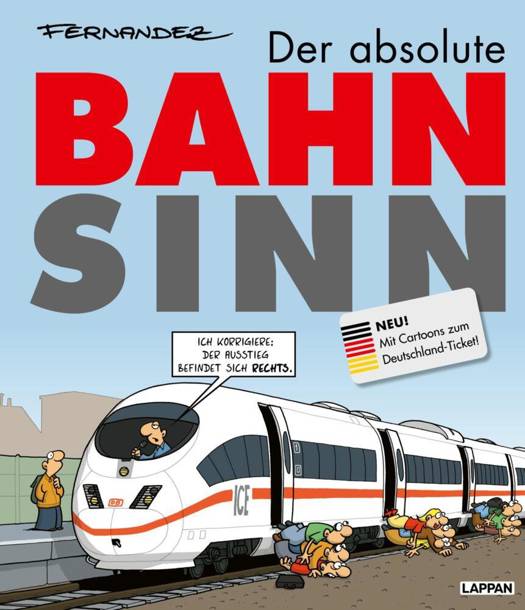 Dieses Bahnsinns-Buch enthält Cartoons zum Deutschlandticket und weitere fast 200 Cartoons mit den besten Pointen rund um die Schiene.