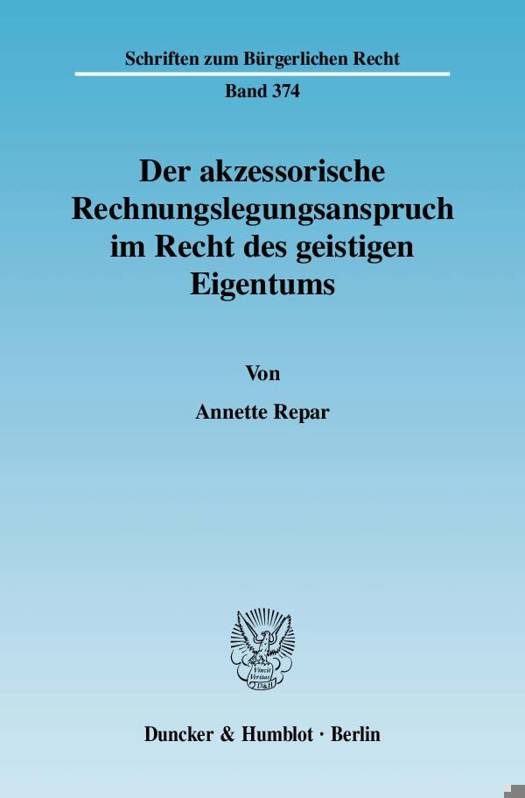 Vor mehr als 100 Jahren hat die Entwicklung des akzessorischen Rechnungslegungsanspruchs im Recht des geistigen Eigentums ihren Anfang genommen. Seitdem haben sich Rechtsprechung und Literatur um seine Ausgestaltung bemüht, ohne allerdings bis heute zu einem durchweg stimmigen und vor allem erfolgversprechenden Gesamtkonzept zu gelangen. Vor diesem Hintergrund und mit Blick auf die Änderungen, die das zur Umsetzung der Durchsetzungs-Richtlinie ergangene Gesetz zur Verbesserung der Durchsetzung von Rechten des geistigen Eigentums im Bereich der Informationsansprüche mit sich gebracht hat, galt es den akzessorischen Rechnungslegungsanspruch näher zu untersuchen. Annette Repar stellt fest, dass der Grund für bestimmte Ungereimtheiten nicht nur in der fallgebundenen und -bezogenen Rechtsprechung, sondern auch in der allgemeinen Wahrnehmung des akzessorischen Rechnungslegungsanspruchs zu suchen ist. Schließlich wird der Rechnungslegungsanspruch gemeinhin"lediglich"als eine Form des Auskunftsanspruchs begriffen und daher zumeist nur im Zusammenhang mit dem akzessorischen Auskunftsanspruch gesehen und behandelt. Angesichts des Umstands, dass das Institut der Rechnungslegung in Paragraf 259 BGB eine eigene dogmatische Ausgestaltung erfahren hat, erscheint dies nicht durchweg als unproblematisch. Insoweit ist der akzessorische Rechnungslegungsanspruch daher in seiner Eigenheit zu begreifen.