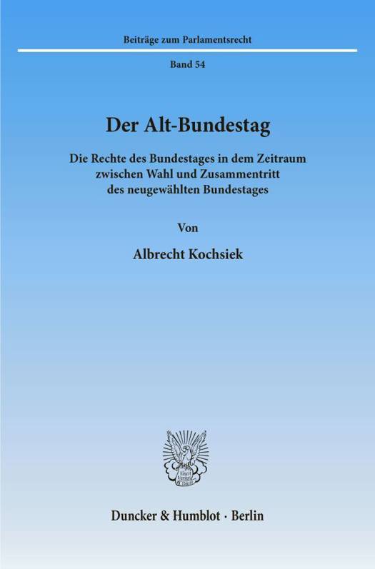 Den Ausgangspunkt der Untersuchung bildet die Auseinandersetzung um die Rechtsstellung des sog. Alt-Bundestages, insbesondere die Frage nach seiner demokratischen Legitimation. Der Autor beleuchtet im wesentlichen drei Bereiche: Er stellt die historische Entwicklung des Übergangs von einem alten auf ein neues Parlament dar, und er zeigt die rechtliche Ausgestaltung des Übergangs vom alten zum nachfolgenden Bundestag auf. Der Schwerpunkt der Arbeit liegt jedoch in der rechtlichen Würdigung der materiellen Zuständigkeit des Alt-Bundestages, d. h. der Ausübung parlamentarischer Befugnisse durch den Alt-Bundestag.