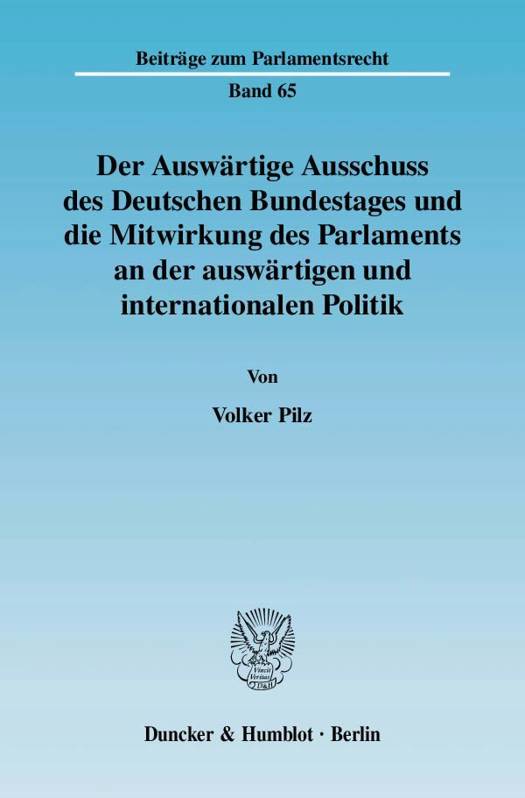 Die Außenpolitik war früher eine klassische Domäne der Regierung. Heute wirkt der Bundestag auf vielfältige Weise an der Gestaltung der auswärtigen und internationalen Politik mit. Das wichtigste mit außenpolitischen Fragen befasste Gremium des Deutschen Bundestages ist der Auswärtige Ausschuss. Er ist für den Bereich der Außenpolitik parlamentarisches Diskussions-, Entscheidungs- und Kontrollorgan. Der Bundesregierung kommt bei der Formulierung und Gestaltung der Außenpolitik zwar weiterhin die Prärogative zu, der Bundestag hat an der auswärtigen Gewalt aber in wesentlichen Fragen Anteil. Durch die Mitwirkung in interparlamentarischen Gremien und durch eigene internationale Kontakte leistet das Parlament zudem einen wichtigen Beitrag zur Demokratisierung der internationalen Beziehungen sowie zu mehr Frieden, Stabilität und Sicherheit in der Welt.