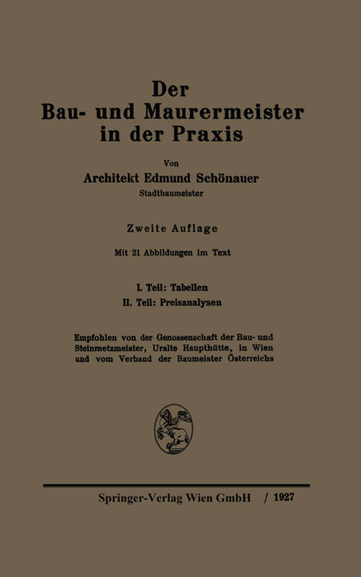 Dieser Buchtitel ist Teil des Digitalisierungsprojekts Springer Book Archives mit Publikationen, die seit den Anfängen des Verlags von 1842 erschienen sind. Der Verlag stellt mit diesem Archiv Quellen für die historische wie auch die disziplingeschichtliche Forschung zur Verfügung, die jeweils im historischen Kontext betrachtet werden müssen. Dieser Titel erschien in der Zeit vor 1945 und wird daher in seiner zeittypischen politisch-ideologischen Ausrichtung vom Verlag nicht beworben.
