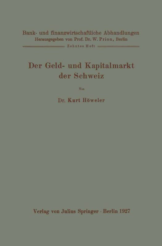 Der Geld- Und Kapitalmarkt Der Schweiz