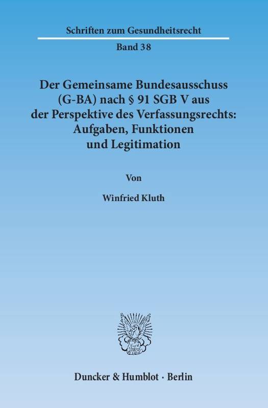 Die demokratische Legitimation der sozialen Selbstverwaltung ist seit Jahrzehnten Gegenstand rechtswissenschaftlicher und gerichtlicher Kontroversen. Besonders umstritten ist innerhalb des Gesamtsystems der sozialen Selbstverwaltung der Gemeinsame Bundesausschuss. Diese auch als "kleiner Gesetzgeber" bezeichnete Organisation, die von den vier großen Organisationen der sozialen Selbstverwaltung im Gesundheitswesen getragen wird, ist vor allem deshalb in den Fokus verfassungsrechtlicher Kritik geraten, weil der Gesetzgeber ihr in den letzten Jahren zunehmend bedeutsame Steuerungsaufgaben im Bereich der Gesundheitsdienstleistungen zugewiesen hat. Die Untersuchung zeigt auf der Grundlage der neueren Rechtsprechung des Bundesverfassungsgerichts, dass der Gesetzgeber durch die Weiterentwicklung des Rechtsrahmens für den Gemeinsamen Bundesausschuss eine ausreichende demokratische Legitimation geschaffen hat, bei der die eröffneten Entscheidungsspielräume vor allem für die sachgerechte Wissensgenerierung im Bereich der Gesundheitsdienstleistungen genutzt werden sollen.
