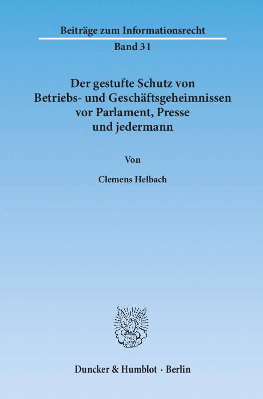 Gegenstand der Arbeit ist die Gegenüberstellung des Schutzguts "Betriebs- und Geschäftsgeheimnis" mit drei strukturell unterschiedlichen öffentlich-rechtlichen Informationsansprüchen, bei deren Geltendmachung es naturgemäß zu Konflikten mit Geheimhaltungsinteressen kommen kann. Die einzelnen Informationsansprüche werden analysiert und einander vergleichend gegenübergestellt. Anschließend erfolgt eine Beleuchtung möglicher Inhalte von Betriebs- und Geschäftsgeheimnissen, aus der Schlussfolgerungen hinsichtlich der Schutzintensität einzelner Informationen gezogen werden. Aus dem Zusammenhang von Schutzniveau und Anspruchsart wird ein Schutzstufenmodell für Betriebs- und Geschäftsgeheimnisse entwickelt, das von einer Stufe, auf der kein Schutz gewährt wird, bis zu einem weitgehend absoluten Schutz reicht. Dieses Stufenmodell soll - ähnlich wie andere der Rechtsdogmatik bekannte Stufenlehren - der Vorstrukturierung und Vorjustierung des Abwägungsprozesses im Einzelfall dienen.
