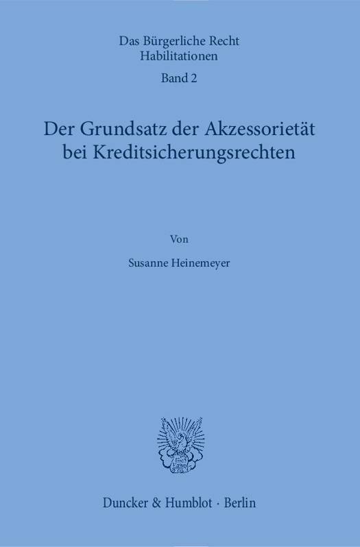 Die Akzessorietät, eines der grundlegenden Prinzipien des Kreditsicherungsrechts, bezeichnet die Abhängigkeit eines Sicherungsrechts wie etwa der Bürgschaft, der Hypothek oder des Pfandrechts von der gesicherten Forderung. In der Arbeit wird die Entwicklung dieses Akzessorietätsgrundsatzes vom römischen Recht über das preußische Recht im 18. und 19. Jh. bis zum BGB untersucht. Dabei werden insbesondere auch die sog. nicht-akzessorischen Sicherungsrechte des BGB in den Blick genommen.