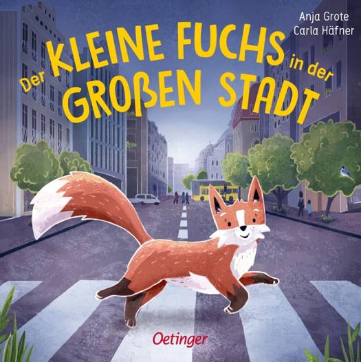 Der kleine Fuchs lebt nicht im Wald, sondern in der Großstadt. Hier fahren Straßenbahnen und Busse, hier gibt es viele Menschen und Hunde. Der kleine Fuchs hat in der Stadt seine Heimat gefunden. Tagsüber schläft er gut versteckt in einem Gebüsch. Er spielt mit dem Ball auf dem Spielplatz, trinkt Wasser aus dem Brunnen auf dem Marktplatz und stibitzt Essen aus den Mülleimern zwischen den Hochhäusern. Ob er auch heimlich in den Bus einsteigt?