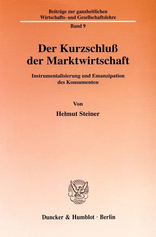 In der vorliegenden Untersuchung beleuchtet der Autor die Entfremdungslasten des Konsumenten, des Gemeinwesens und der Wirtschaft nur schlaglichtartig. Er konzentriert sich auf das Zustandekommen des Systemfehlers infolge Absenz der Kulturbereiche bei der Bedürfnisbildung und auf die so entstandene, kaum beachtete Lücke im marktwirtschaftlichen Ordnungsrahmen. Schließlich schlägt Helmut Steiner eine Problemlösung durch nicht-legistische Ergänzung des Ordnungsrahmens vor.