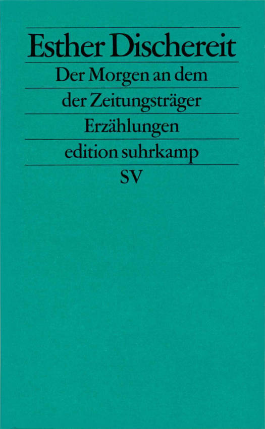 Wenn sie auch abwesend und unerfüllt sind, so beherrschen sie dennoch den Körper, das Leben, den Rhythmus: Leidenschaft und Liebe. Sie stehen hinter der Tür, die eine Frau schließt, werden ausgesperrt wie zugelaufene Köter. Was bleibt, ist die einzelne, die in der Welt steht wie unzugehörig. Eine, die sich wundert, wie Kinder oder Fremde sich wundern. Gewaltphantasien beherrschen die Frau in Der Morgen an dem der Zeitungsträger. Sie inszeniert sich Tag für Tag als weißen wartenden Körper. Wartend wie eine Spinne. Hier wie in den weiteren Erzählungen liegen Traum und Albtraum dicht beieinander. Esther Dischereit hat sich in Prozesse hineingeschrieben, Geschichten, die unvermittelt anfangen und die aufhören, ohne einen Schluß zu haben. Es sind Verweigerungen, die ihre Geschichten so lebendig wie irritierend machen.