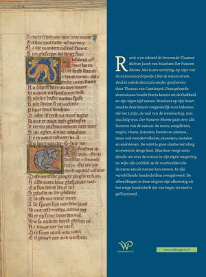 Rond 1270 schreef de beroemde Vlaamse dichter Jacob van Maerlant Der Naturen Bloeme. Het is een vertaling-op-rijm van Liber de natura rerum van de geleerde Thomas van Cantimpré. Dankzij Maerlant kon iedereen die geen Latijn kende, lezen over de mens, zoogdieren, vogels, vissen, insecten, bomen, planten, wondervolkeren, monsters, metalen en edelstenen. Maerlant vertaalde niet slaafs: hij voegde details toe over de natuur in zijn omgeving en wijze lessen die de mens van de natuur kan leren. Ingrid Biesheuvel vertaalde de tekst in modern Nederlands en schreef er een inleiding bij over de literairhistorische achtergronden. Het boek bevat vele fraaie miniaturen.