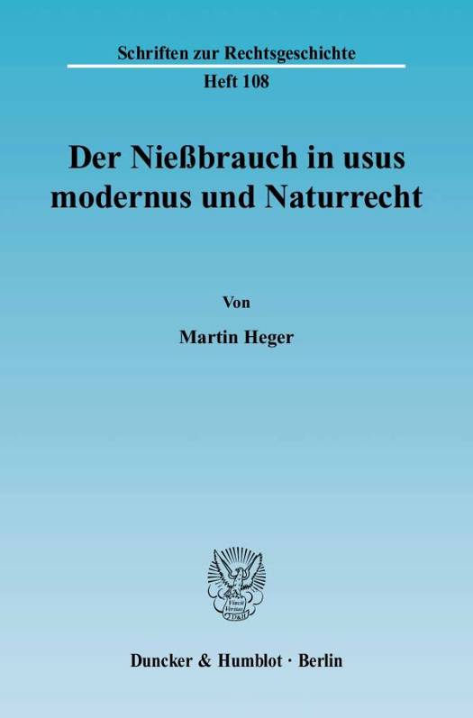 Martin Heger stellt den Nießbrauch in der frühen Neuzeit in seinen Bezügen zu anderen Rechtsinstituten sowie in seinen gesellschaftlichen Funktionen dar und zeigt den Einfluß des Naturrechts bis zum preußischen Allgemeinen Landrecht von 1794.
