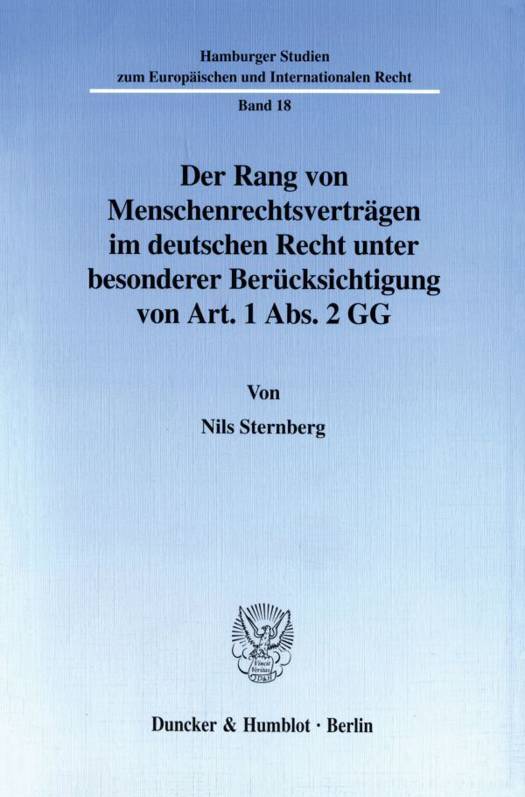 Nils Sternberg untersucht zunächst mögliche Konflikte zwischen dem deutschen Recht und den internationalen Menschenrechten und gibt einen Überblick über den innerstaatlichen Rang von Menschenrechtsverträgen in ausgewählten Staaten. Im Mittelpunkt der Arbeit steht dann die Frage, ob das Grundgesetz einen übergesetzlichen Rang der Menschenrechtsverträge verlangt, wobei insbesondere untersucht wird, ob Art. 1 Abs. 2 GG eine derartige Forderung enthält.