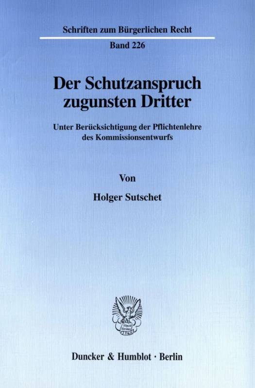 Im Mittelpunkt steht der Problemkreis Vertrag mit Schutzwirkung für Dritte und Drittschadensliquidation. Der Autor versucht, alle Konstellationen, in denen Dritte aus einem für sie fremden Schuldverhältnis einen Schadensersatzanspruch erlangen können, unter dem Begriff des Schutzanspruchs zugunsten Dritter zusammenzufassen. Dieser wird aus 328 Abs. 1 BGB abgeleitet.