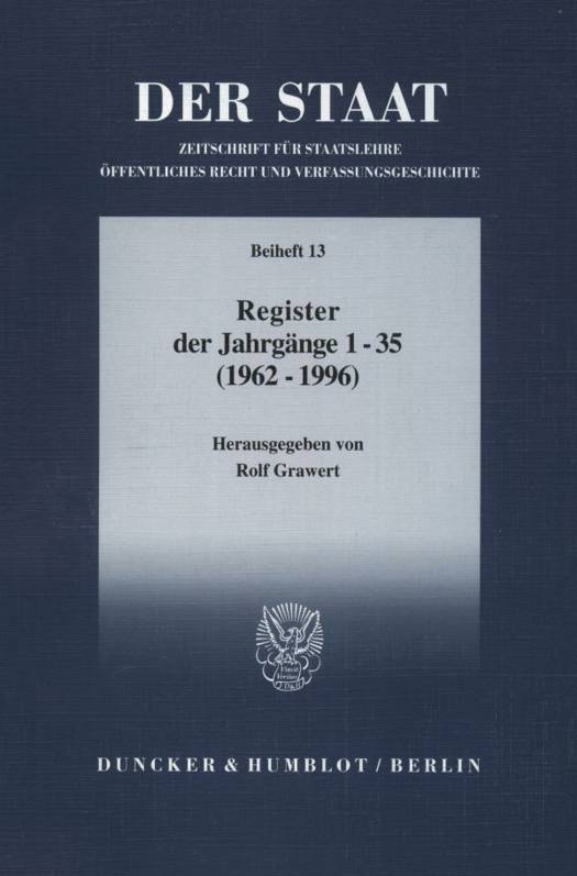 Nach fünfunddreißig Jahrgängen zieht DER STAAT, Zeitschrift für Staatslehre, Öffentliches Recht und Verfassungsgeschichte, eine Zwischenbilanz seiner Publikationen, um den Zugang zu seinen Forschungserträgen zu erleichtern und den Durchblick durch sein Schwerpunktthema zu sichern. Obwohl »Zeitschrift«, ist DER STAAT im wesentlichen der auf Beständigkeit angelegten Institution des Staates gewidmet. Im Gründungsjahr 1962 wurde ihm »Zum Geleit« die Aufgabe gestellt, eine »Stätte der Staatsbesinnung« zu sein, der Besinnung also auf »die politische Ordnungsform des Staates, wie sie in Europa geschichtlich erwachsen ist, als eine der wichtigsten Sicherungen persönlicher und politischer Freiheit«. Interessierte Philosophen und Theologen, Juristen und Historiker, Soziologen und Politologen wurden eingeladen, »jeder von seiner Warte aus und mit seinen Methoden, solche Probleme und Problemlösungen ohne Beschränkung auf irgendeine wissenschaftliche Richtung oder politische Überzeugung« darzustellen und kritisch zu diskutieren (Bd. 1, 1962, S. 1). Viele sind auf vielfältige Weise der Einladung gefolgt, so daß die Zeitschrift das heute selten gewordene Profil in Anspruch nehmen kann, ein wahrhaft fachübergreifendes, staatswissenschaftliches Publikationsorgan zu sein. Deshalb ist die Zwischenbilanz der Sache nach nützlich und nötig.
