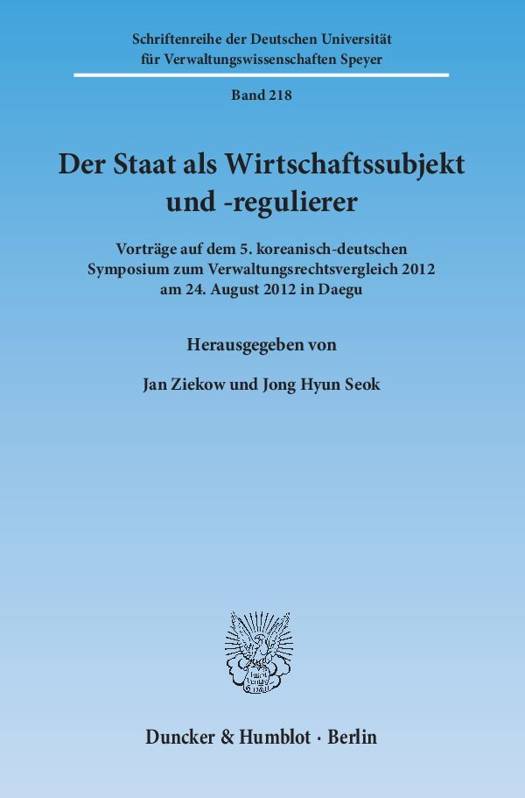 Der Band fasst die Beitrage zusammen, die im Rahmen des koreanisch-deutschen Symposiums zum Verwaltungsrechtsvergleich 2012 vorgetragen wurden. Das Symposium, das am 24. August 2012 in Daegu stattfand, hatte zum Ziel, den Bereichen Staatliche Regulierung wirtschaftlicher Tatigkeit und Wirtschaftliche Betatigung der offentlichen Hand auf kommunaler Ebene in den beiden Landern in ihren unterschiedlichen Facetten nachzugehen.