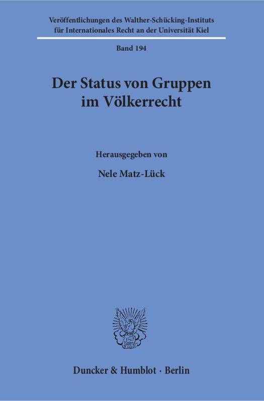 Der vorliegende Sammelband versucht, die Vielschichtigkeit des Begriffs der "Gruppe" im Völkerrecht umfassend abzubilden und die völkerrechtliche Entwicklung des Status bestimmter Gruppen nachzuzeichnen. Dazu wird der Frage nachgegangen, ob und in welchem Umfang das Völkerrecht Gruppen von Personen als bedingt rechtsfähige Einheiten wahrnimmt. Der Begriff der Gruppe spielt in aktuellen Erörterungen zum Völkerrecht eine wichtige Rolle, wenn z.B. Flüchtlinge, Minderheiten oder indigene Völker als Kategorien erörtert werden, deren Mitglieder wegen der Gruppenzugehörigkeit schutzbedürftig erscheinen. Angesichts massenhafter Migrationsbewegungen rücken die Rechte international anerkannter Flüchtlinge und entsprechende Staatenpflichten in den Fokus einer Debatte, die Gruppen nach dem rechtlichen Status der Angehörigen unterscheidet. Aber auch die Rechte und Pflichten bewaffneter Gruppen in militärischen Konflikten lassen sich als Aspekt des völkerrechtlichen Umgangs mit Gruppen verorten.