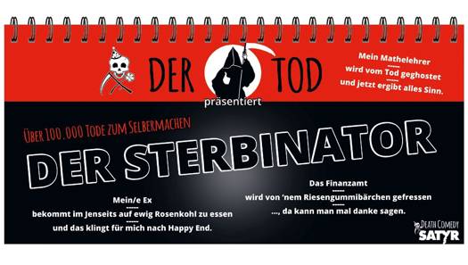 Seit dreizehn Jahren ist DER TOD von den deutschsprachigen Comedybühnen nicht mehr wegzudenken. Mit dem STERBINATOR erscheint nun sein schon viertes Werk bei Satyr: Mit schwarzem Humor und kreativem Geschick bietet dieser Aufsteller für alle wahren Bösewichte des Lebens die jeweils beste Die-it-yourself-Lösung.Endlich kann man sich ganz ohne schlechtes Gewissen an all denen rächen, die einem in letzter Zeit tierisch auf den Grabstein gingen. Mit dem STERBINATOR bekommt jeder sein Fett weg: »Der Dieb, der mein Fahrrad geklaut hat«, »Das Finanzamt« oder »Die Mücke im Schlafzimmer«. Der Erfinder der Death Comedy hat über 100.000 Kombinationsmöglichkeiten geschaffen, über die man schmunzeln, diskutieren und schadenfroh glücklich sein kann.