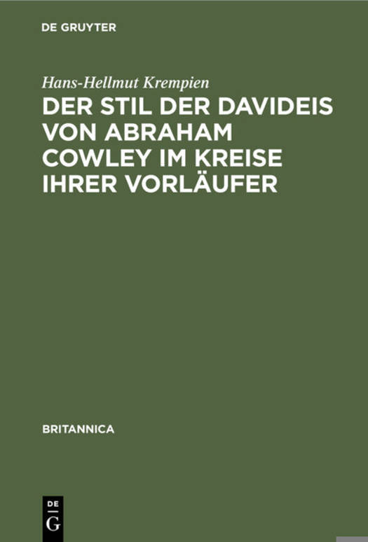 Der Stil Der Davideis Von Abraham Cowley Im Kreise Ihrer Vorläufer