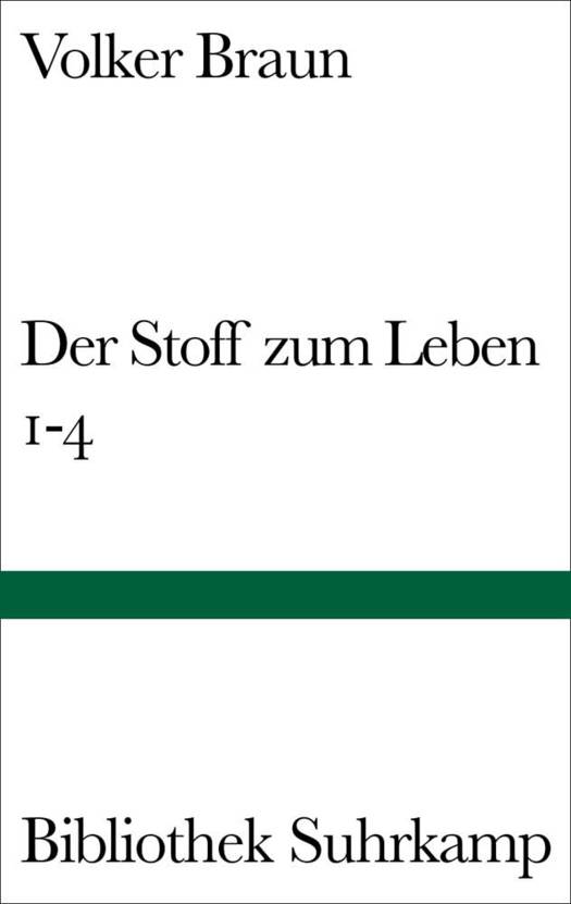 »Die 'Definition' eines ersten Trainings des aufrechten Gangs hatte noch geschwankt zwischen den Formeln 'Stoff zum Schreiben, zum Leben'. Inzwischen scheint es sich für den Lyriker geklärt zu haben: Leben ist Schreiben. Alle 'Materialien' von I bis - vorerst - XIV, Landschaft und Dichtung, Taten wie Untaten, erfüllte Augenblicke und der Wutausbruch im 'Material' VI ('Der Frieden'): alles Stoff zum Leben in der geformten Sprache des Gedichts. Hier wird alles zum Material. Zeilen großer Dichtung und große Gedanken eines unglücklichen Bewußtseins, Schrei und Gelächter, sound and fury«, schrieb Hans Mayer im Nachwort der 1990 unter dem Titel Der Stoff zum Leben 1-3 erschienenen Erstausgabe (BS 1039). Voker Brauns Zyklus wird in dem neuen Band erweitert und abgeschlossen durch einen vierten Teil »Der Stoff zum Leben 4: TUMULUS«, der zuerst separat veröffentlicht wurde (Tumulus, 1999).