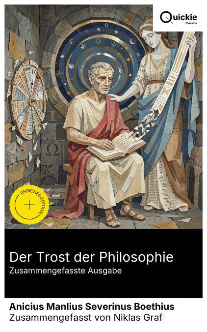 Der Trost der Philosophie ist ein prosimetrisches Dialogwerk, verfasst um 524 in der Haft, in dem die allegorische Philosophia den verzweifelten Erzähler zur Einsicht führt, dass das höchste Gut in der vernunftgeleiteten Glückseligkeit liegt. Zwischen kunstvoller Prosa und metrischen Passagen entfaltet Boethius eine Synthese aus Platonismus, Aristotelesrezeption und stoischer Ethik: Fortuna wird als flüchtiges Spiel entlarvt, Vorsehung und Schicksal unterschieden, die Freiheit des Willens mit der göttlichen Allwissenheit verschränkt. Im spätantiken Kontext wirkt das Werk als Brücke zur mittelalterlichen Gelehrsamkeit; bemerkenswert ist der weitgehende Verzicht auf explizite christliche Argumente. Boethius, Senator und Gelehrter am Ostgotenhof Theoderichs, verband politische Verantwortung mit dem Projekt, Aristoteles ins Lateinische zu übertragen und antikes Wissen zu systematisieren. Der Prozess wegen angeblichen Hochverrats, die Inhaftierung in Pavia und die Nähe zum Tod motivierten eine existentielle Rückschau: Aus biographischer Katastrophe entsteht ein philosophischer Selbstunterricht, der persönliche Klage in rationales Ordnen überführt und die Resilienz einer klassisch gebildeten römischen Elite demonstriert. Dieses Buch empfiehlt sich Leserinnen und Lesern, die geistige Orientierung jenseits tagespolitischer Zufälle suchen: als Einführung in antike Ethik und Metaphysik, als Meisterstück literarischer Form und als Schlüsseltext zwischen Antike und Mittelalter. Es tröstet, indem es richtet, klärt und Maßstäbe erneuert.