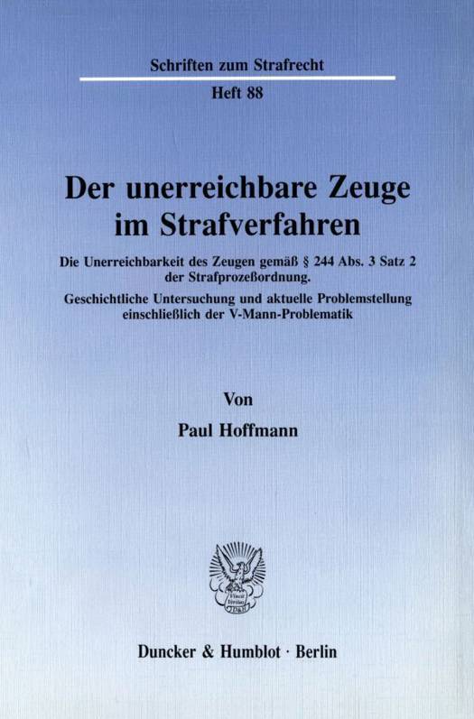 Die Unerreichbarkeit Des Zeugen Gemass 244 Abs. 3 Satz 2 Der Strafprozessordnung. Geschichtliche Untersuchung Und Aktuelle Problemstellung Einschliesslich Der V-Mann-Problematik