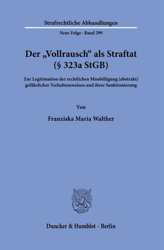 Die Arbeit widmet sich einer besonders umstrittenen Strafvorschrift dem Vollrauschtatbestand ( 323a StGB). Dieser erweist sich im Hinblick auf den verfassungsrechtlich verankerten Schuldgrundsatz (nulla poena sine culpa) als hochst problematisch. Das Hauptaugenmerk gilt den Legitimationsbedingungen staatlichen Eingriffshandelns. Insofern mussen nicht zuletzt die Anforderungen des verfassungsrechtlichen Verhaltnismaaigkeitsgrundsatzes sowohl fur die Legitimation von Schuldspruch und Strafe als auch bereits fur die Legitimation der Freiheitsbeschrankung der Burger durch Verhaltensnormen (in Form von Berauschungsverboten) beachtet werden. Insbesondere wird der Frage nachgegangen, unter welchen Bedingungen ubermaaiger Alkoholgenuss zu einer strafrechtlichen Verantwortlichkeit fuhren kann, wenn im Zustand nicht ausschlieabarer Schuldunfahigkeit eine rechtswidrige Tat begangen wird.