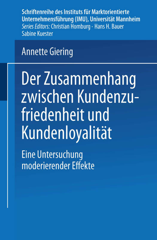 Annette Giering untersucht in ihrer Arbeit, durch welche Faktoren die Stärke des Zusammmenhangs zwischen Kundenzufriedenheit und Kundenloyalität beeinflusst wird. Die Autorin identifiziert und systematisiert diese moderierenden Faktoren und überprüft ihren Einfluss auf den Zusammenhang zwischen Kundenzufriedenheit und Kundenloyalität empirisch. Die Ergebnisse zeigen, dass die Zufriedenheit von Kunden zwar grundsätzlich einen positiven Einfluss auf ihre Loyalität hat, dass die Stärke dieses Einflusses jedoch von Merkmalen der Geschäftsbeziehung, des Kunden, des Produkts, des Anbieters und des Marktumfelds abhängt.
