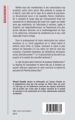 Méfions-nous des revendications et des contestations trop virulentes contre notre passé. Elles prennent le masque de la liberté, mais elles ont le coeur de la volonté de puissance. Le déracinement ouvre à de nouvelles fièvres totalitaires. On a remplacé le temps long par l'instantanéité d'une ère consumériste et abrutissante qui exclut tout rapport au monde autre que matérialiste, où l'information à outrance, rapide et simpliste, tue l'approfondissement, où l'humanisme n'est plus qu'une tolérance abstraite, où le surdéveloppement de l'ego et du relativisme, instrument du nivellement par le bas, rendent impossible l'esprit critique. Dans le prolongement de toute contestation des valeurs anciennes, le XIXe siècle engendrera un XXe siècle violent et nihiliste entre Hitler et Staline. Comment le siècle le plus barbare de l'humanité a-t-il pu naître sur fond de recul des croyances, d'avancées techniques, de rationalisme, de progrès social, d'enrichissement ? Y a-t-il précisément un lien entre ces progrès et la montée des nouvelles barbaries ? Le rejet du passé peut-il favoriser de nouveaux totalitarismes ? La négation du transcendant ne nourrit-elle pas la barbarie car aucune référence supérieure ne vient contrarier la volonté de puissance de l'Homme devenu Dieu ?
