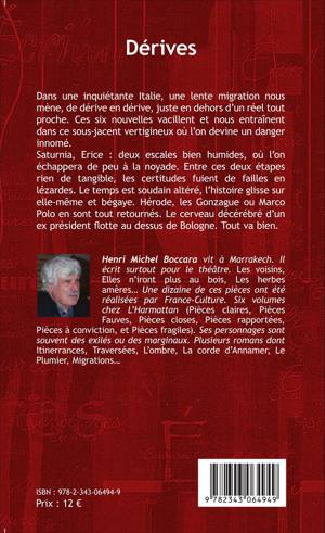 Dans une inquiétante Italie, une lente migration nous mène, de dérive en dérive, juste en dehors d'un réel tout proche. Ces six nouvelles vacillent et nous entraînent dans ce sous-jacent vertigineux où l'on devine un danger innomé. Saturnia, Erice : deux escales bien humides, où l'on échappera de peu à la noyade. Entre ces deux étapes rien de tangible, les certitudes fuient de failles en lézardes...