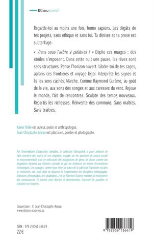 « Viens sous l’arbre à palabres ! » Déplie ces nuages : des étoiles s’imposent. Dans cette nuit une pause, les rêves sont sans structures. Pense l’horizon ouvert. Libère-toi de tes cages, aplanis ces frontières et voyage léger. Interprète les signes et lis les sens cachés. Marche. Comme Raymond Gurême, au goût de la vie, aux sons des songes et aux caresses du vent. Rejoue le monde, fait de rencontres. Sculpte des temps nouveaux. Répartis les richesses. Réinvente des communs. Sans maîtres. Sans traitres.