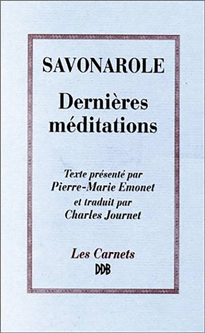 Savonarole, brisé par la torture, mais " ne haïssant personne, ne maudissant personne ", a encore la force, avant le supplice du petit matin - le 8 mai 1498 - d'écrire, en un " cri déchirant et sublime ", sa réflexion ultime sur le texte d'un psaume d'espérance. Par leur grande beauté, par leur intensité pathétique, ces dernières méditations du dominicain de Florence, que veut briser un pape, atteignent pour toujours les grandeurs d'une spiritualité personnelle, trahie et abandonnée, humiliée et offensée.