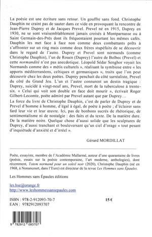 Duprey et Prevel sont normands (comme Christophe Dauphin), l’un de Rouen (Duprey) l’autre de Bolbec (Prevel) et cette normandité n’est pas anecdotique. Léopold Sédar Senghor voyait les Normands comme des « métis culturels », réalisant la symbiose entre « les apports méditerranéens, celtiques et germaniques », traits que l’on peut découvrir chez les deux poètes.