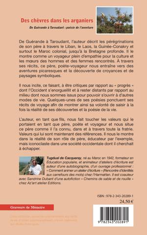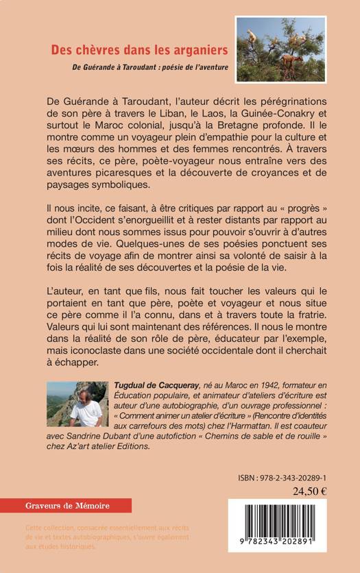 De Guérande à Taroudant, l'auteur décrit les pérégrinations de son père à travers le Liban, le Laos, la Guinée-Conakry et surtout le Maroc colonial, jusqu'à la Bretagne profonde. Il le montre comme un voyageur, plein d'empathie pour la culture et les moeurs des hommes et des femmes rencontrés. À travers ses récits, ce père, poète-voyageur nous entraîne vers des aventures picaresques et la découverte de croyances et de paysages symboliques. Quelques-unes de ses poésies ponctuent ses récits de voyage afin de montrer ainsi sa volonté de saisir à la fois la réalité de ses découvertes et la poésie de la vie.