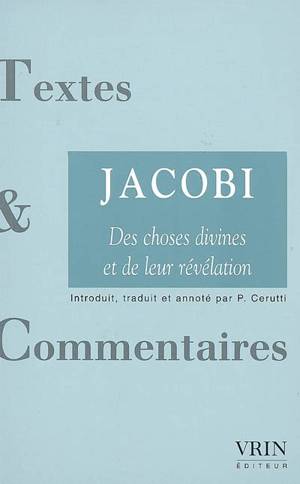 Des choses divines et de leur revelation est le testament philosophique de son auteur, Friedrich Heinrich Jacobi. La premiere evaluation d'ensemble du postkantisme et des grands systemes idealistes qu'il y propose determine encore l'image que nous pouvons nous faire de la philosophie classique allemande. La querelle qu'elle a declenchee et la reponse outranciere que lui a apportee Schelling, blesse par la critique du naturalisme que developpe la deuxieme partie de l'ouvrage, en font le document le plus precieux dont nous disposions pour interpreter les debats qui, durant les premieres decennies du XIXe siecle, ont mis aux prises la philosophie de la religion et la theologie speculative. La discussion des rapports du realisme et de l'idealisme religieux, de la revelation de la raison et de la doctrine positive que Jacobi developpe d'abord en reponse a Matthias Claudius, puis lors d'un dialogue avec Friedrich Schlegel, non seulement eclaire cette lecture de l'histoire de la philosophie a l'heure de l'avenement du nihilisme, mais permet aussi de comprendre ce que l'auteur entend par ce vrai rationalisme qu'il oppose aux philosophes de son temps. Elle donne ainsi a celui qui fut l'un des peres de l'idealisme allemand en meme temps que son critique le plus acerbe l'occasion de preciser une derniere fois les rapports de la raison et de l'entendement, question qu'avec Kant, il fut l'un des premiers a poser a la pensee moderne.
