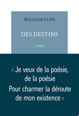 C'est un chemin ample, et parfaitement cadencé, que William Cliff nous propose d'emprunter avec lui dans ce nouveau livre des origines. Avec le sonnet comme exigeante charpente formelle, il transporte page après page la simplicité puissante de son univers au rythme tranquille de sa langue limpide, rocailleuse et charnue. Des destins commence par revenir sur son enfance dans la petite ville wallonne de Gembloux, brossant les portraits intimes, souvent caustiques, de quelques-uns de ses proches. Il y a sa marraine - "une femme despotique qui avait mal au foie et criait son malheur", son parrain - "mon oncle bien-aimé qui a cessé de respirer / et dont le corps est cadenassé dans un coffre bien fermé", et de sa bonne-Maman, lectrice de romans policiers et fumeuse de tabac égyptien. Chacun a nourri à sa façon le destin poétique de l'auteur. Puis, la généalogie familiale laisse place à l'évocation de premiers émois érotiques auprès des garçons du village et du pensionnat, bientôt entremêlées de récits amoureux de l'âge adulte. Portée par un allant méditatif et la grande souplesse du vers, une sagesse désabusée et amusée se glisse dans les interstices de sa poésie narrative, entre un hommage à Baudelaire et un autre à Walt Whitman. La conscience du temps qui file surgit dans la banalité de scènes quotidiennes - un retour de nuit arrosée, une méchante chute sur les pavés - tandis que le poète solitaire voit la vie et la mort se tenir main dans la main, partout, dans la texture étrange des rencontres et des choses. Ainsi "la putrescence des oignons quand vient l'été / est nécessaire pour la floraison des fleurs / lesquelles fécondées donneront la jetée / des semences perdues au fond des profondeurs".