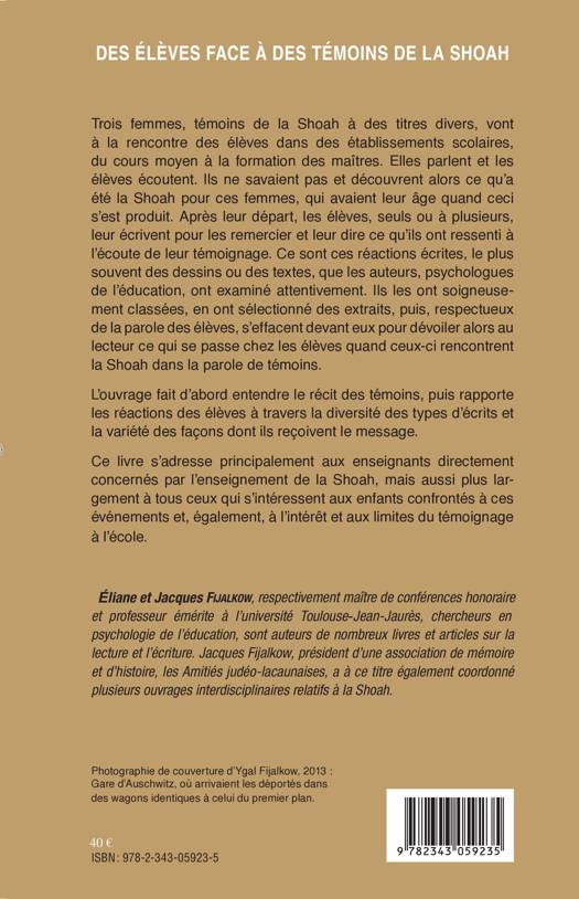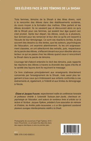 Trois femmes, témoins de la Shoah racontent leur expérience à des élèves.. Après leur départ, ils leur écrivent pour les remercier et leur dire ce qu’ils ont ressenti à l’écoute de leur témoignage. Ces réactions dévoilent au lecteur ce qui se passe chez les élèves quand ils rencontrent la Shoah dans la parole des témoins. L’ouvrage fait d’abord entendre le récit des témoins, puis apporte les réactions des élèves à travers la diversité des types d’écrits et la variété des façons dont ils reçoivent le message.